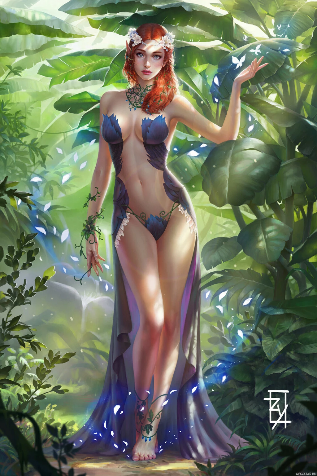 The image features a fantasy-themed artwork of an elf with