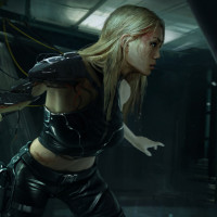 an industrial setting with pipes and machinery around her. Her attire suggests she may be involved in some form of combat or action role within the context of this storyline. The overall atmosphere has a dark, moody feel, which is often associated with