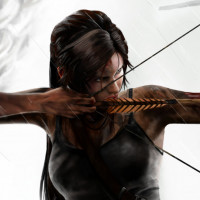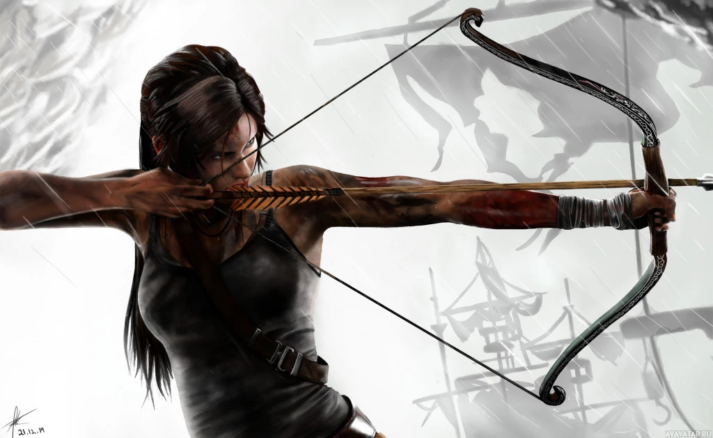 The image depicts a character named Lara Croft, known from the "Tomb Raider"