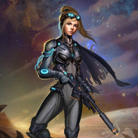 combat armor and weapons that allow them to effectively engage in combat within the universe of StarCraft. The character is shown with