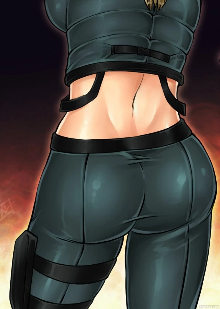 waisted design that emphasizes her physique. Her stance suggests