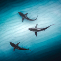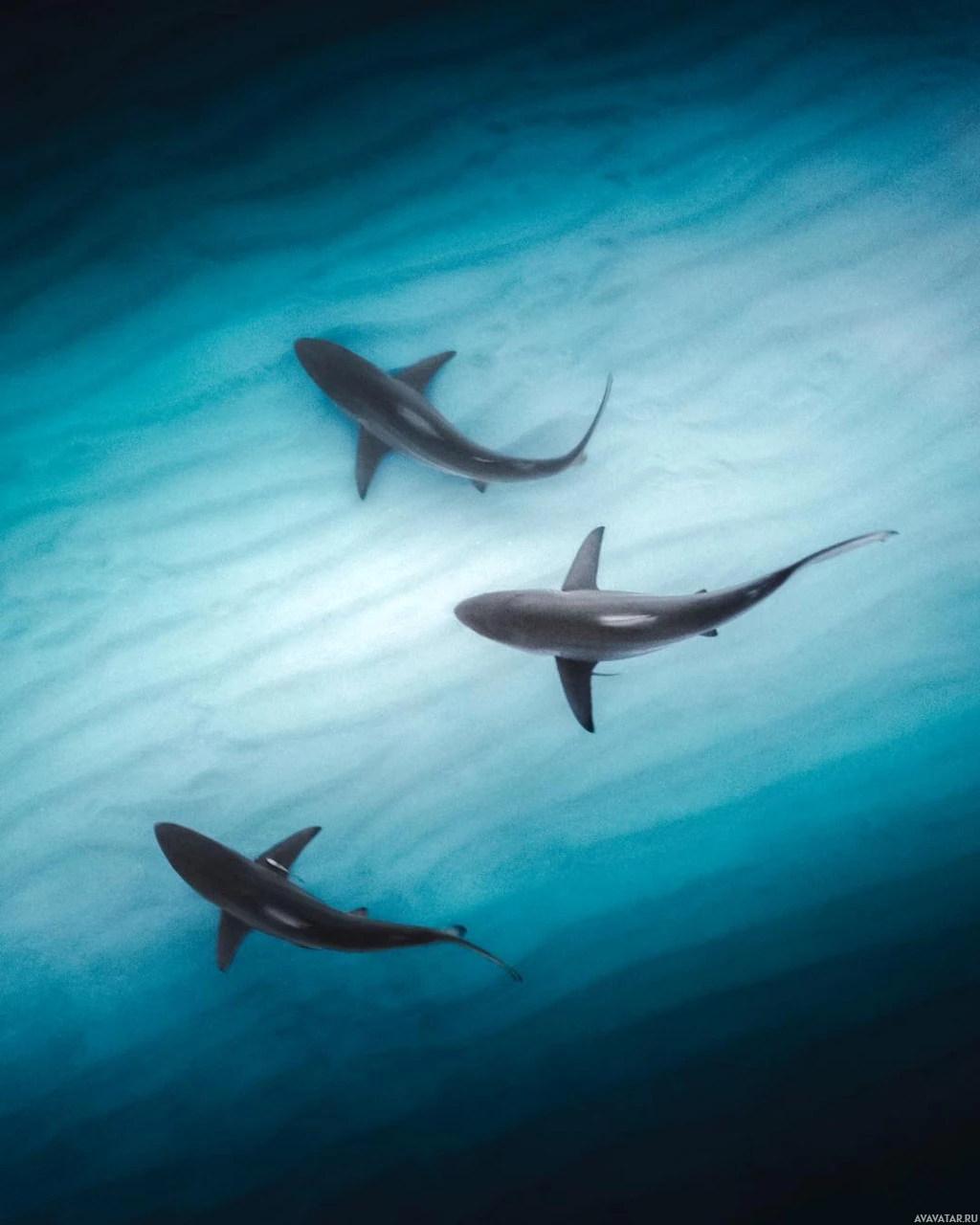 sea creatures. The sharks' presence in this image is a testament to their power and adaptability in