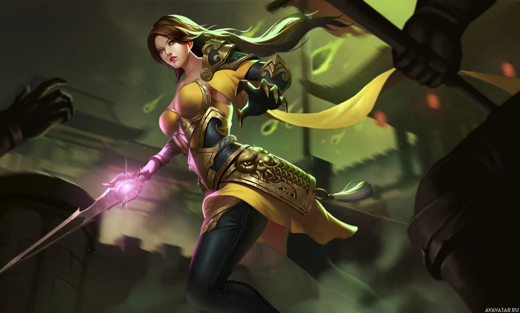 В образе есть персонаж из фэнтези-тематической игры или истории. Она выглядит молодой женщиной с элегантным нарядом и мечом в руке. Фон предполагает сцену действия или приключения, возможно, с участием боевых действий или разведки. Этот персонаж может быть частью более широкого повествования во вселенной ее игры.
