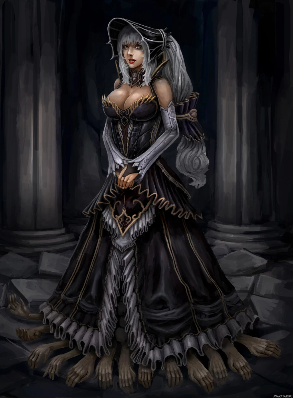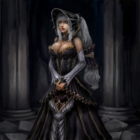 a female character dressed in an elaborate and ornate dress. The outfit appears to be fantasy-inspired, with elements that resemble armor or