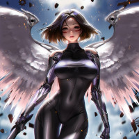 a female character with wings, suggesting that she may be an angel or some sort of supernatural creature. She has