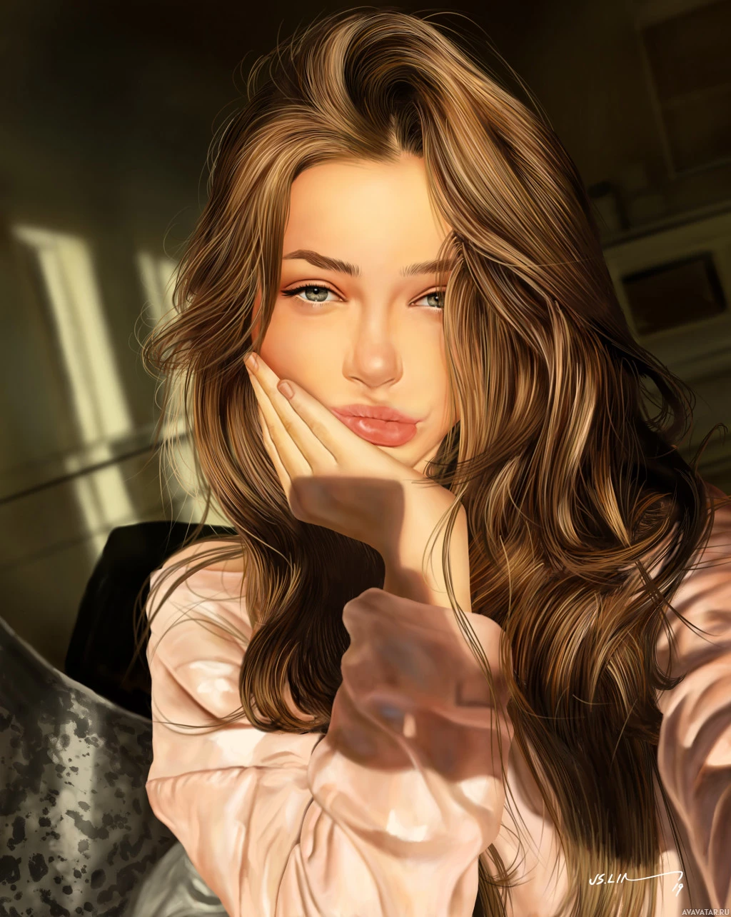 long shadows across the room. She seems to be looking directly at the viewer, capturing