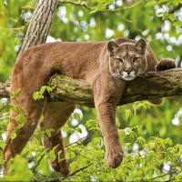 a natural setting, possibly a forested area, which is consistent with the puma's habitat.