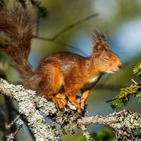 red squirrel is easily identifiable by its distinctive coloring and fluffy tail.