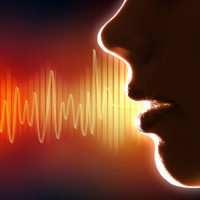 sound production or speech. The background has a gradient that could be interpreted as sunset or sunrise colors due to
