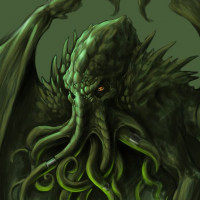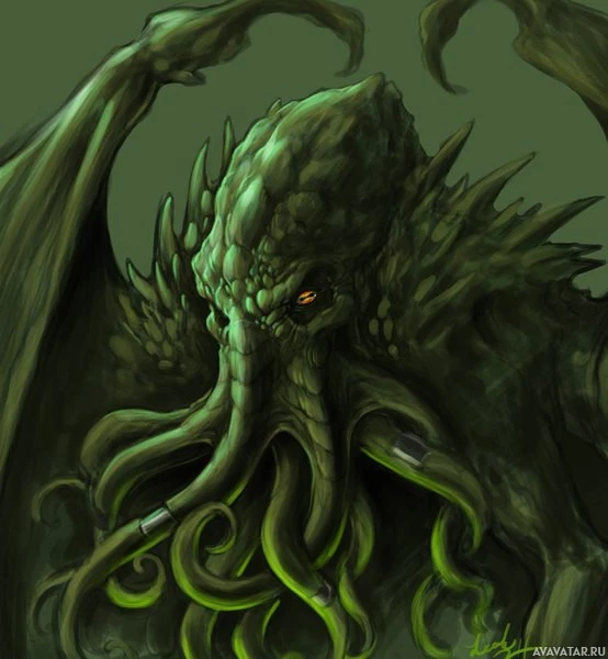 a fantasy version of Cthulhu, which is often referred to as the "Great Old One." It has tentacles and a humanoid body with an elongated head featuring two