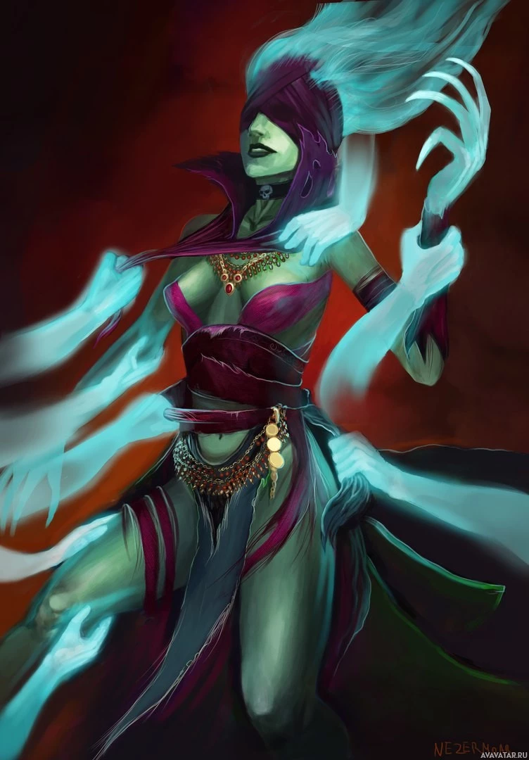 Death Prophet. This character is known for her dark and gothic appearance, often depicted with a hooded cloak and skull motifs. She has