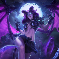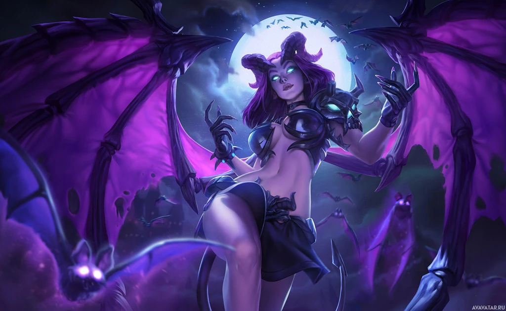 an illustrated character that appears to be a fantasy-themed succubus. She has demonic features such as horns and wings, with