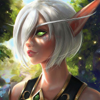 a female character with fantasy-themed design elements. She has pointed ears, suggesting she is an elf or a similar creature, and she's depicted wearing what appears to be armor or