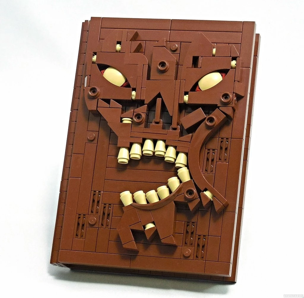 yellow eyes and teeth. The LEGO book's details are remarkable for their