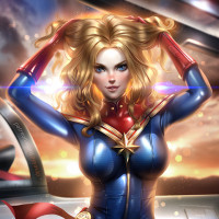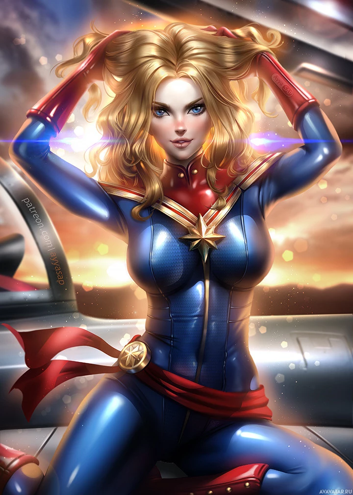 The image shows a stylized, artistic representation of Ms. Marvel, a superheroine from