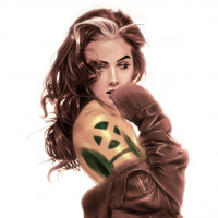 The image shows an illustration of a character that resembles Rogue from