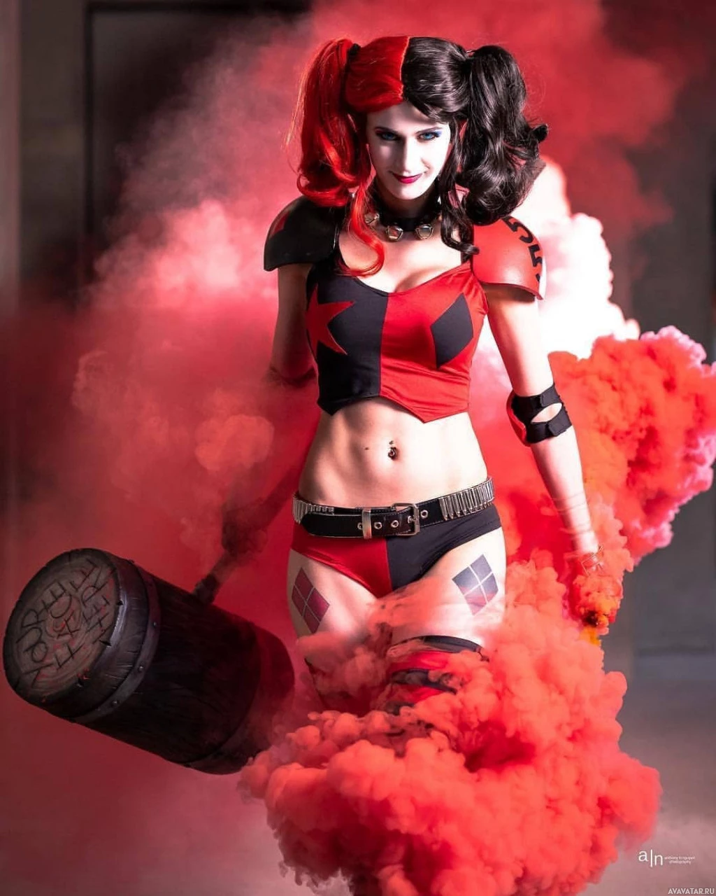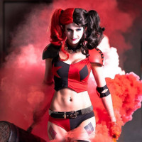 a blonde hairstyle, which complements their look as Harley Quinn.