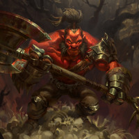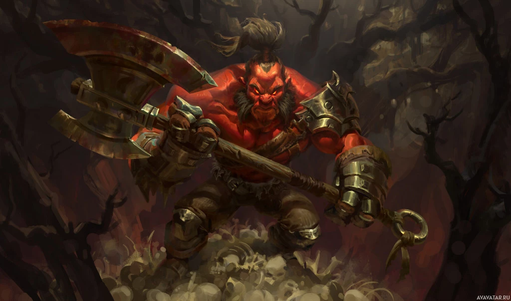 the video game Dota 2. This character is known for using an axe and has red skin, with visible muscles, tattoos, and