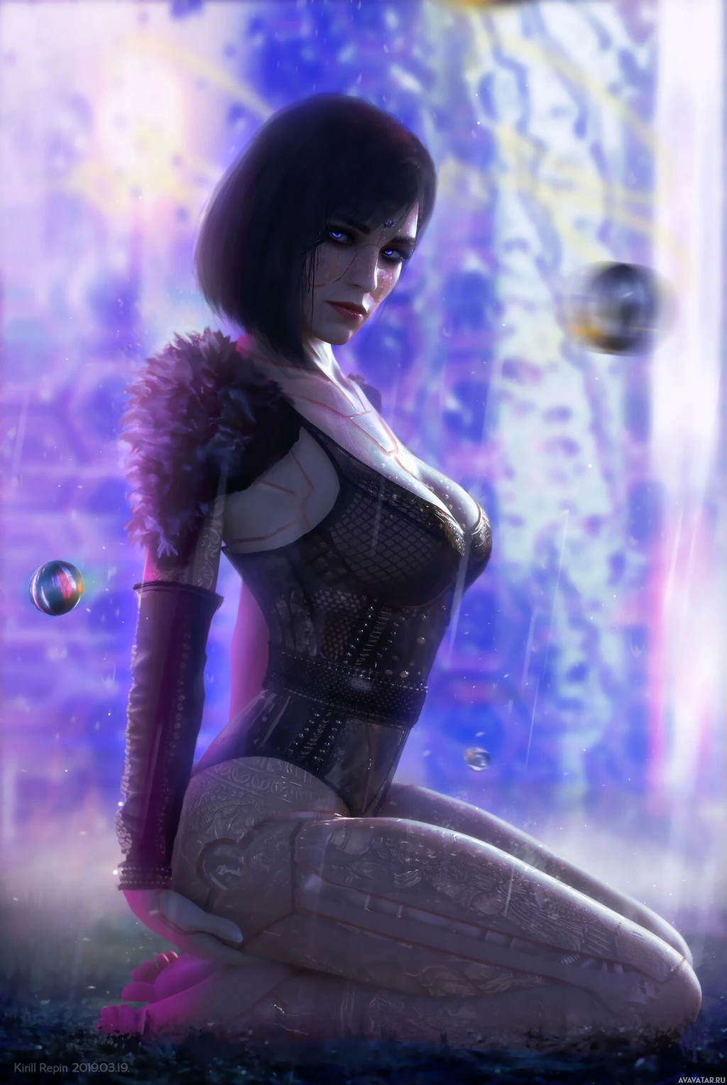 a neon glow and an abstract design, which adds to the fantasy element of the artwork.