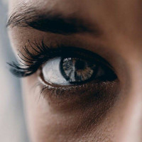 The image shows a close-up of a person's eye, which is captured in detail. The eye appears to be focused on something and