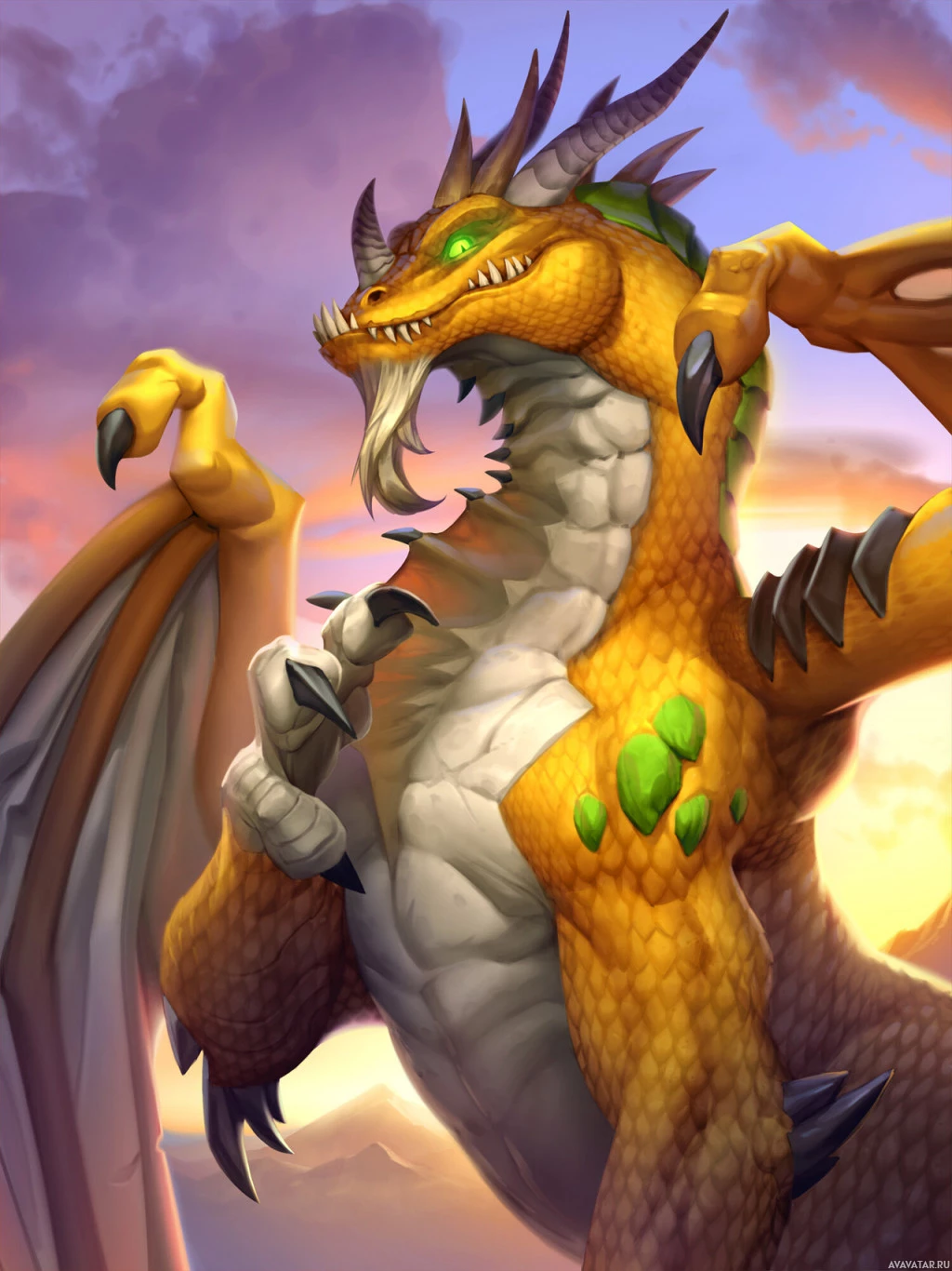 a fantasy creature, which is a dragon. This dragon has a vibrant yellow color with some