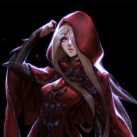 a hooded cloak or cape, which suggests she might be depicted as a figure from fantasy or mythology. The character has a sword sheathed at her side, indicating that she may have some