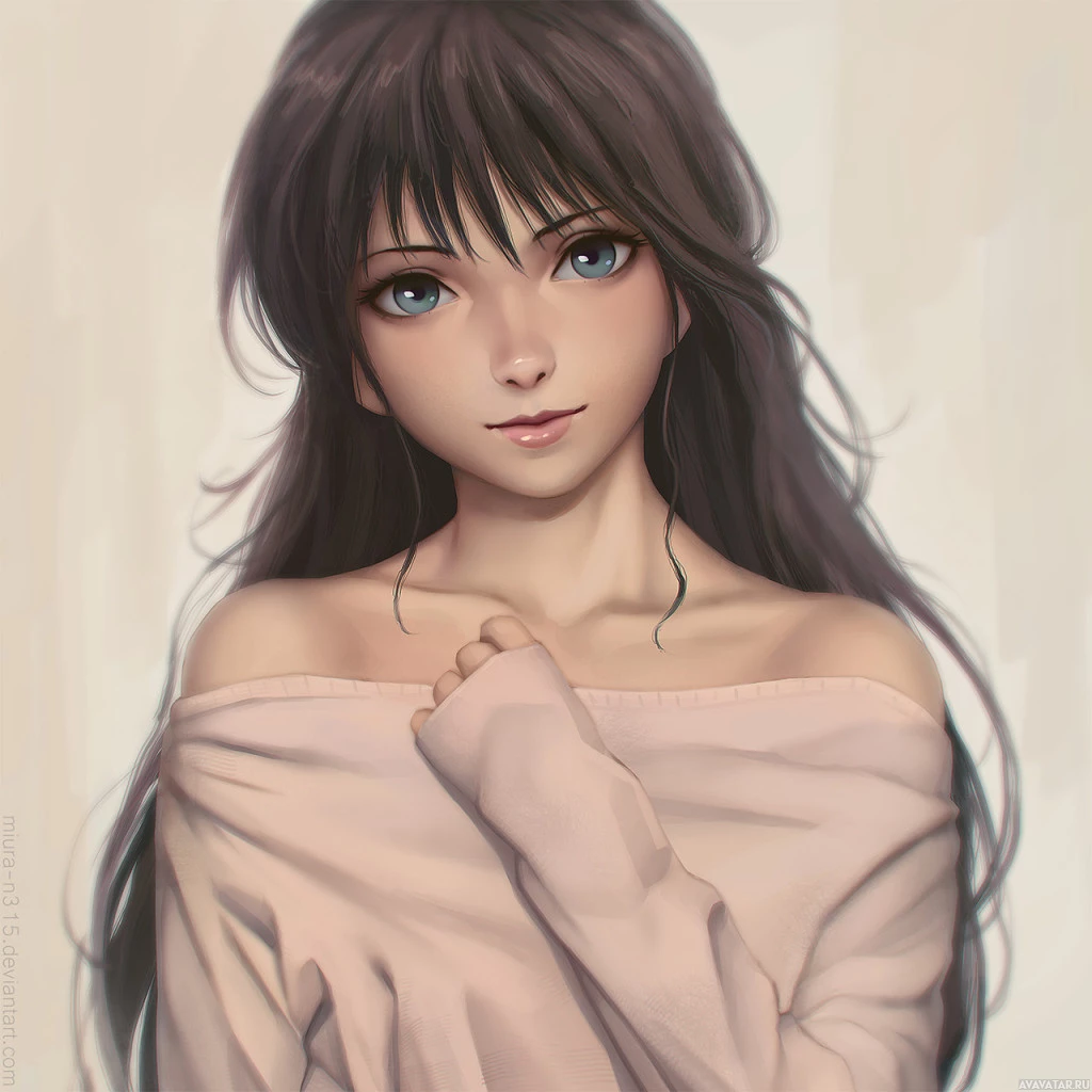 a pink shirt that appears to be a cropped top. Her expression is soft and she seems to be looking at the viewer, as indicated by her