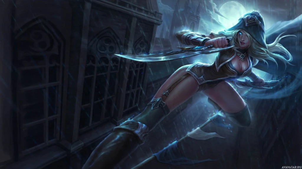 signature pose, which suggests she's ready to shoot or perform some sort of attack. The setting appears to be