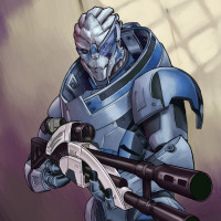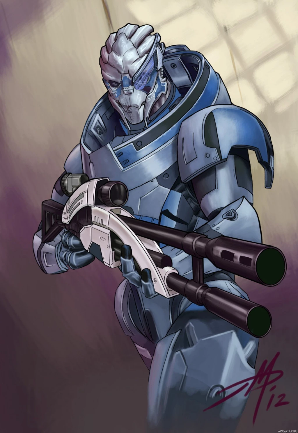 the video game series "Mass Effect," specifically designed to resemble a Turian, which is a fictional alien species in the game's universe. The character is wearing