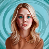 a young woman with blonde hair. She is looking directly at the viewer with