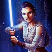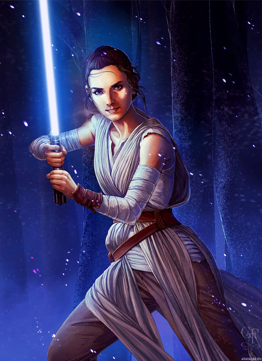 The image depicts Rey, a character from the "