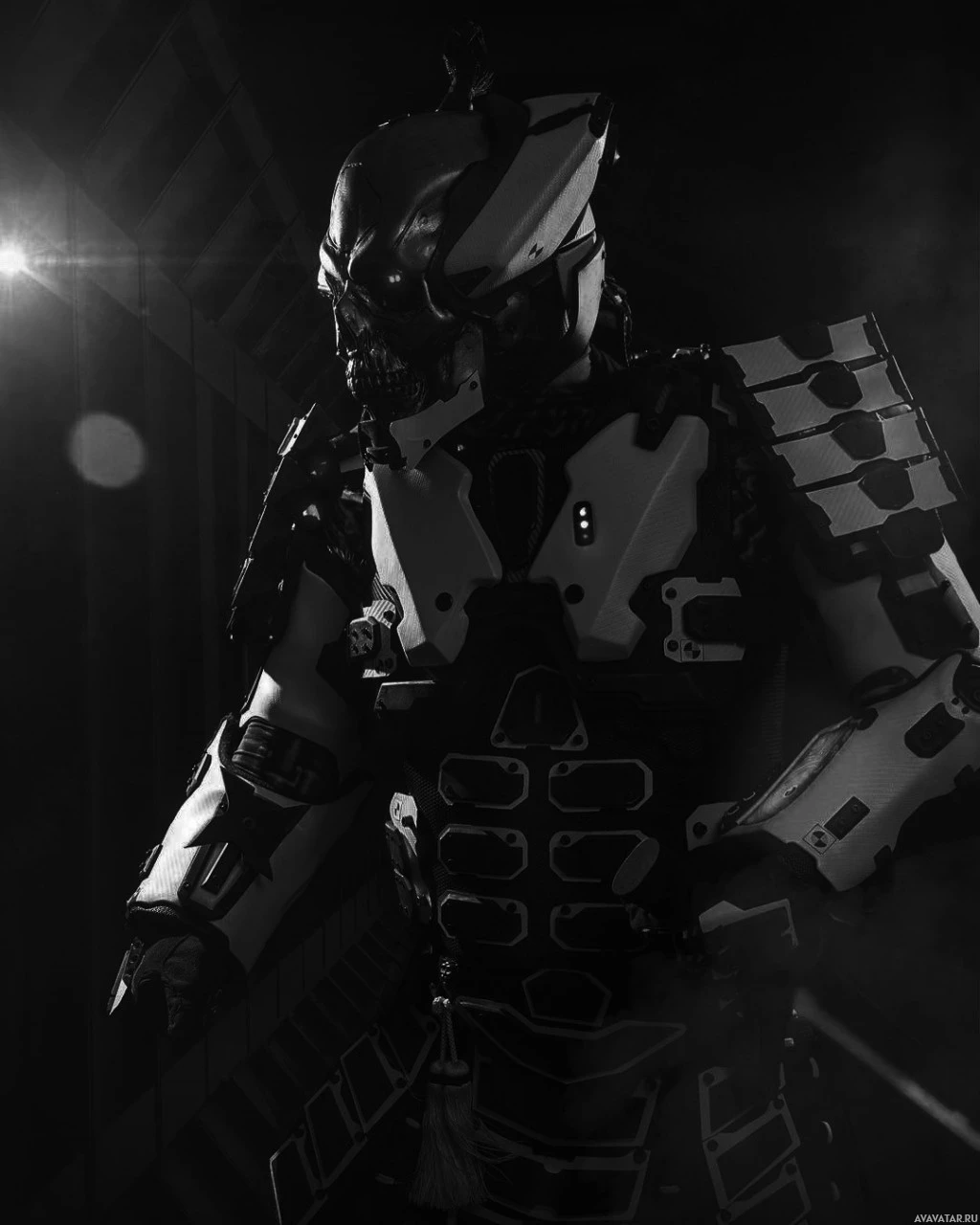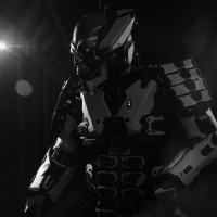 a human warrior, possibly inspired by samurai armor. It has a helmet with what appears to be