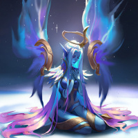 blue wings and what appears to be a horn or antler adornment on their head. They are also wearing what looks like armor or a costume with