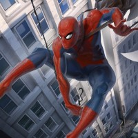 Comics universe. He is depicted in his iconic red and blue suit, which includes the characteristic
