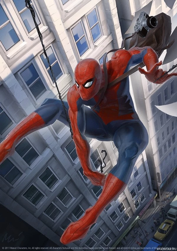 the dynamic nature of Spider-Man's adventures and his ability to navigate through city environments using his spider-web-like lines.