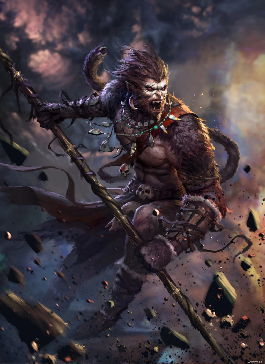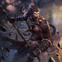 Monkey King. He is styled in a fantasy or mythical way, wearing armor and holding a staff, which suggests he might be a warrior or
