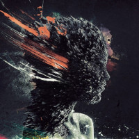 conceptual art, representing themes such as identity, mind-altering experiences, or psychological distress. The colors are predominantly dark with contrasting bright elements, which adds to