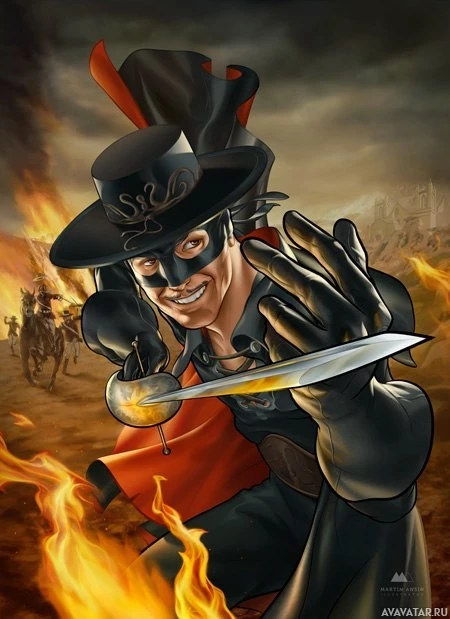 the iconic figure Zorro. The person is holding the sword in one hand and reaching out towards