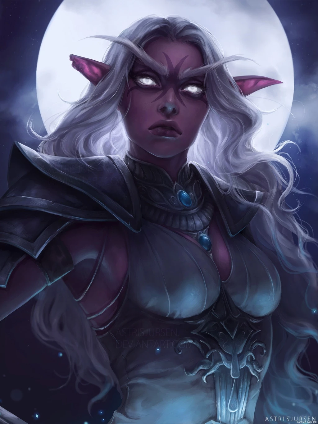 a powerful figure within her realm or a member of an elite group. The overall aesthetic of the image aligns with typical fantasy and game-related artwork.