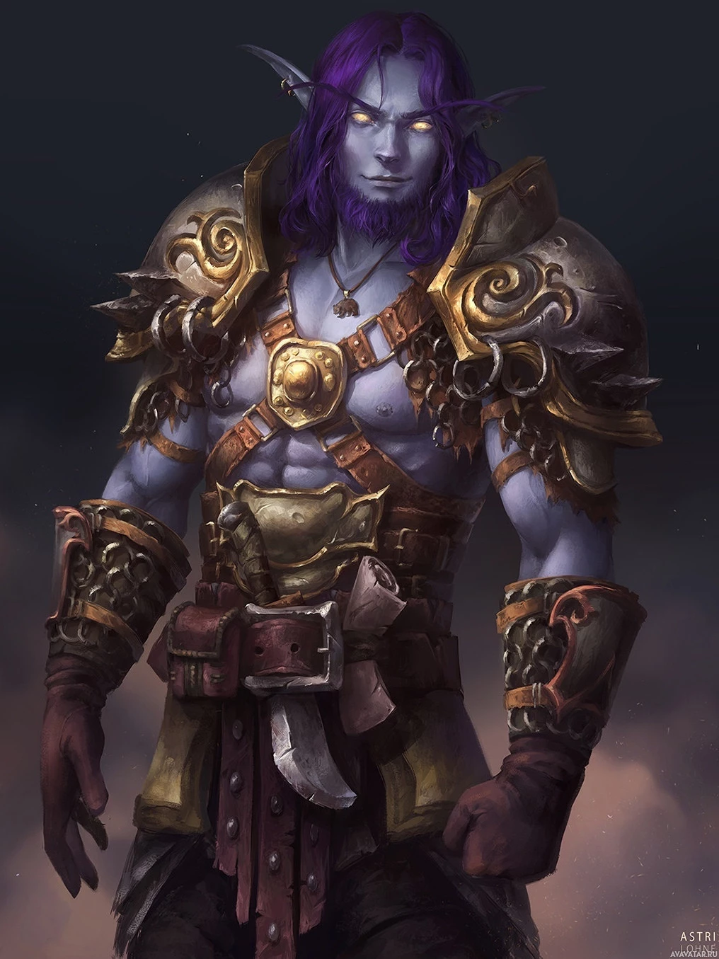 Warcraft universe. The character appears to be a drow, recognizable by their