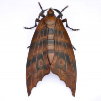 a shiny finish that gives the impression of polished metal. This kind of artwork is often used to depict realistic insects with high precision, especially when it comes to replicas intended for scientific or artistic purposes.