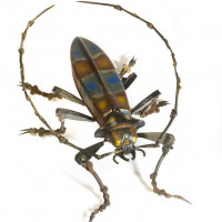 blue wing cover with lighter markings, which may indicate its specific genus or species within the family.