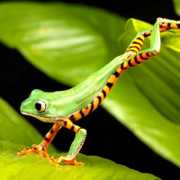 vibrant coloration and arboreal habits. It's a type of poison dart frog, characterized by its