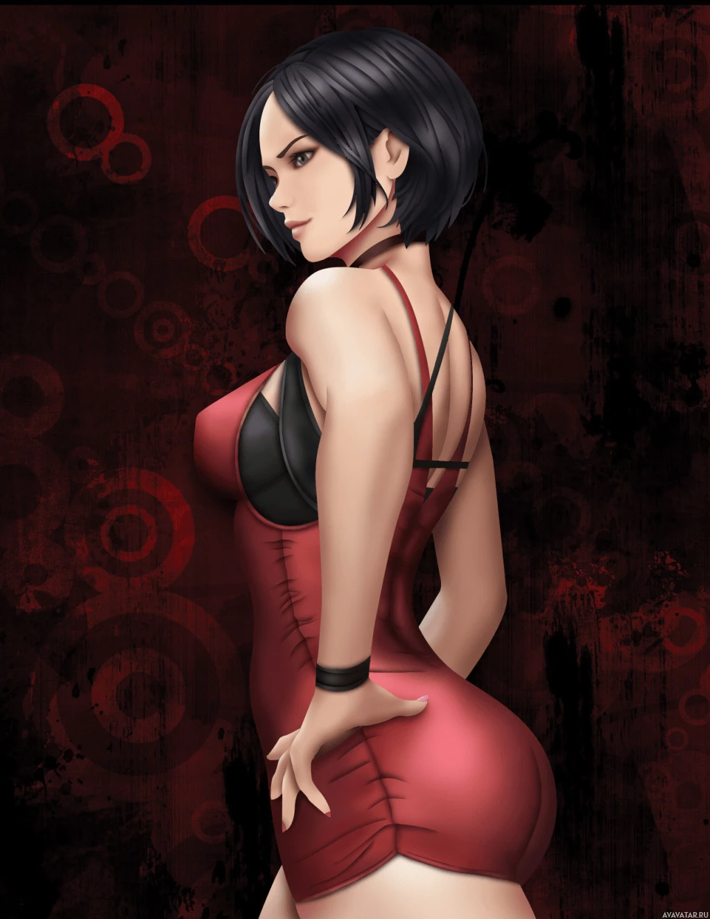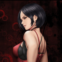 The image features an animated character who appears to be a young girl with black hair and dark eyes. She is wearing a red dress with a deep neckline and black undergarments. Her expression is neutral, and she seems to be standing in a setting that has a gritty or industrial aesthetic, with a background that includes mechanical elements and patterns.
