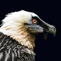На картинке изображен грифонный стервятник, для которого характерны большие размеры, длинные ноги и красный глаз. У него пернатая голова с гребенчатой структурой поверх нее, называемой «каска». Этот вид известен тем, что пасет туши в их естественной среде обитания.