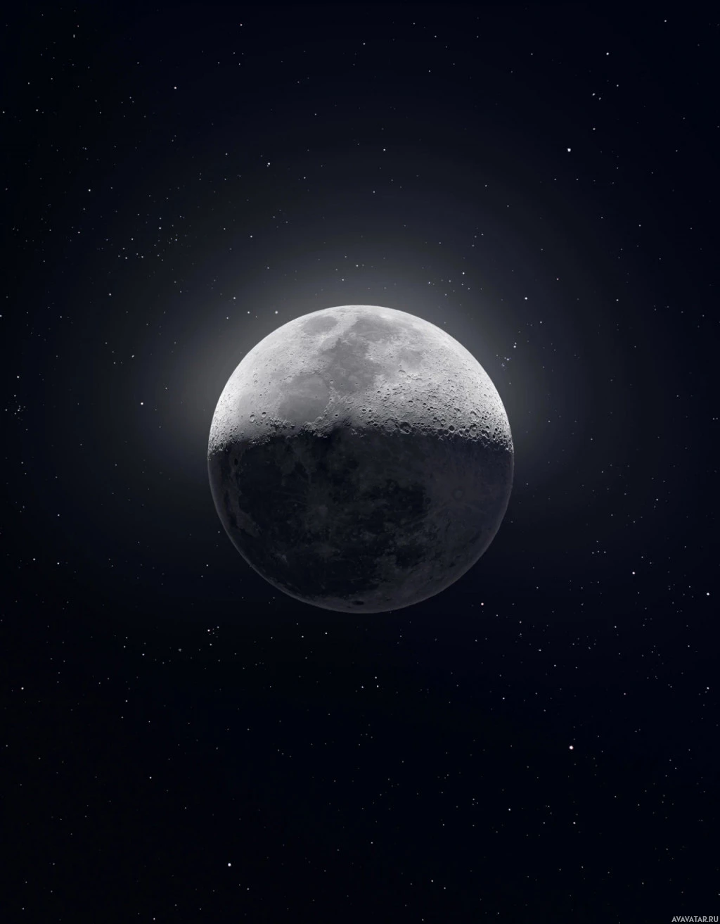 Картинка показывает восковую гиббиозную луну в ночном небе. Там нет видимых облаков, и кажется, что это делается во время сумерек или раннего вечера, когда небо темное, но все еще имеет некоторый свет. Есть также слабые звезды, видимые на темном небе.