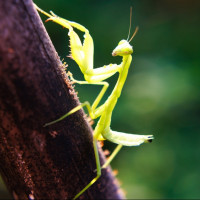 large eyes, a small head, and forelimbs that are folded in a way that suggests the act of prayer. This type of mantis is often associated with the phrase "mantid" as their name is sometimes mistakenly spelled or pronounced.