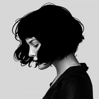 facial expression seems contemplative. The style of the drawing suggests it could be digital artwork, characterized by smooth lines and
