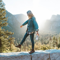 the outdoor environment or possibly taking a break from a hike.