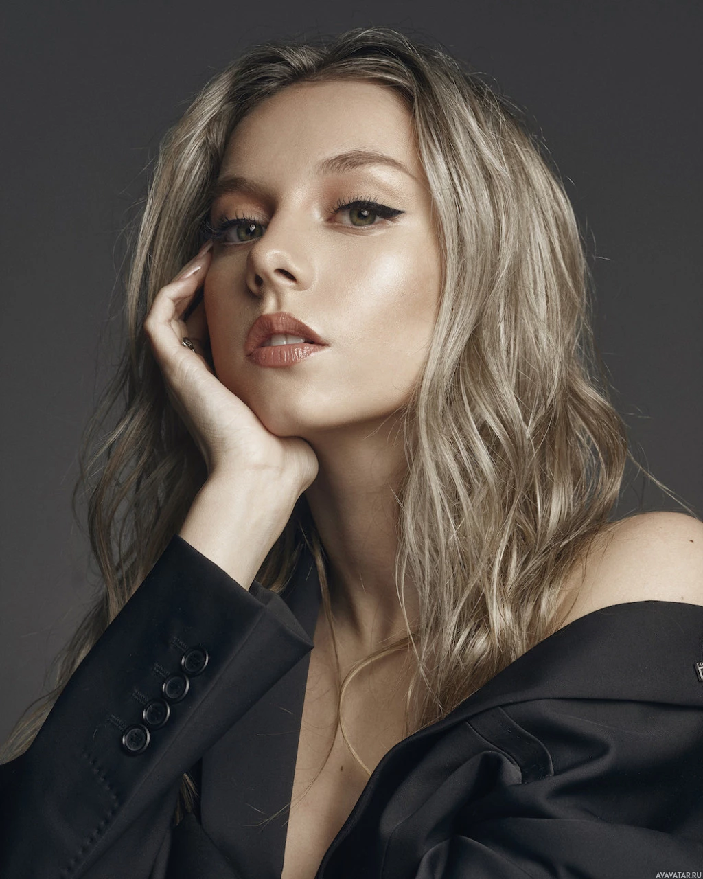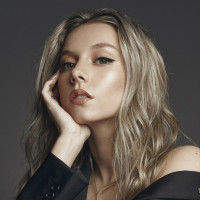 wavy hair and appears to be in her early 20s. Her makeup is done with a focus on enhancing her eyes and lips, giving her a polished and stylish look. The lighting and the background are neutral, which suggests that the image might have been taken for